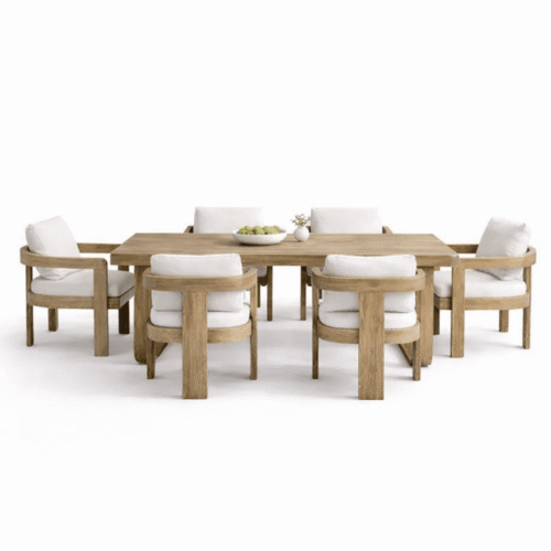 The Bantam Set is among the best outdoor furniture collections available in Cairo and across Egypt, designed to bring elegance and comfort to your patio, garden, or poolside. This stunning set includes a 3-seater outdoor sofa, two outdoor chairs, an ottoman, chaise lounge, coffee table, and two side tables, crafted from natural beech wood with handwoven seagrass rope accents and upholstered in premium waterproof fabric.