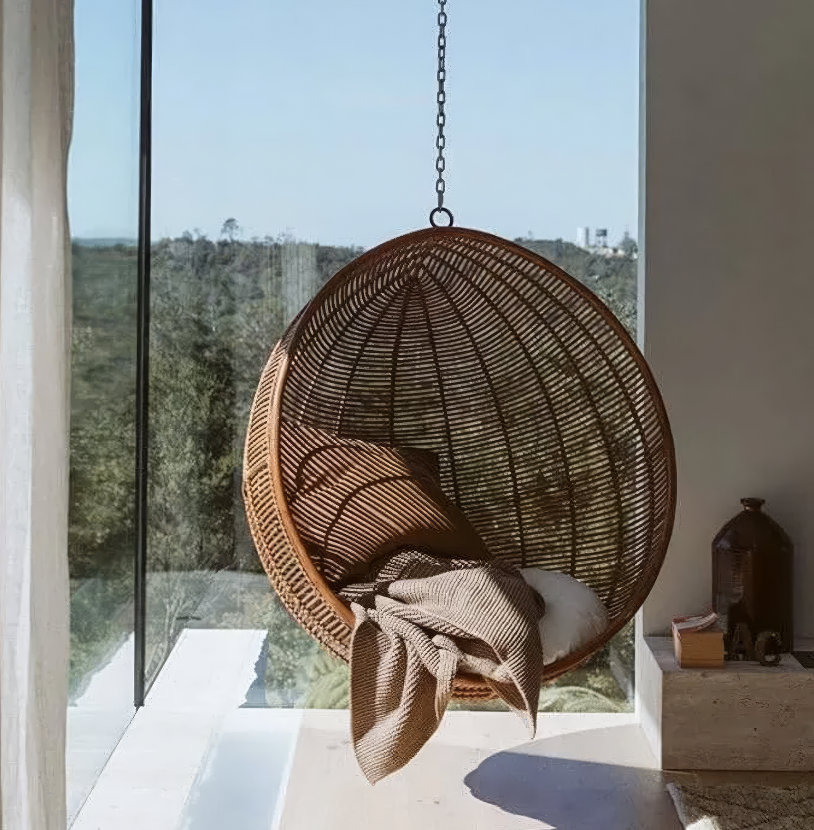 Architectural Statement: Its rounded geometry breaks up the sharp lines of modern furniture, adding a soft, inviting “biophilic” focal point to bedrooms or sunrooms.