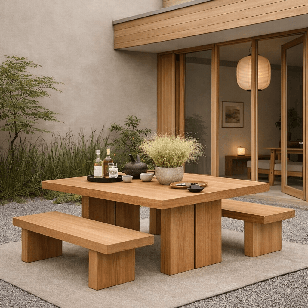The Cena Dining Set represents the pinnacle of large-format outdoor dining furniture available in Cairo and across Egypt. This magnificent collection features an expansive 200cm dining table paired with two substantial 200cm benches, all crafted from premium natural beech wood – specially selected for its exceptional durability in Egypt’s demanding climate conditions.