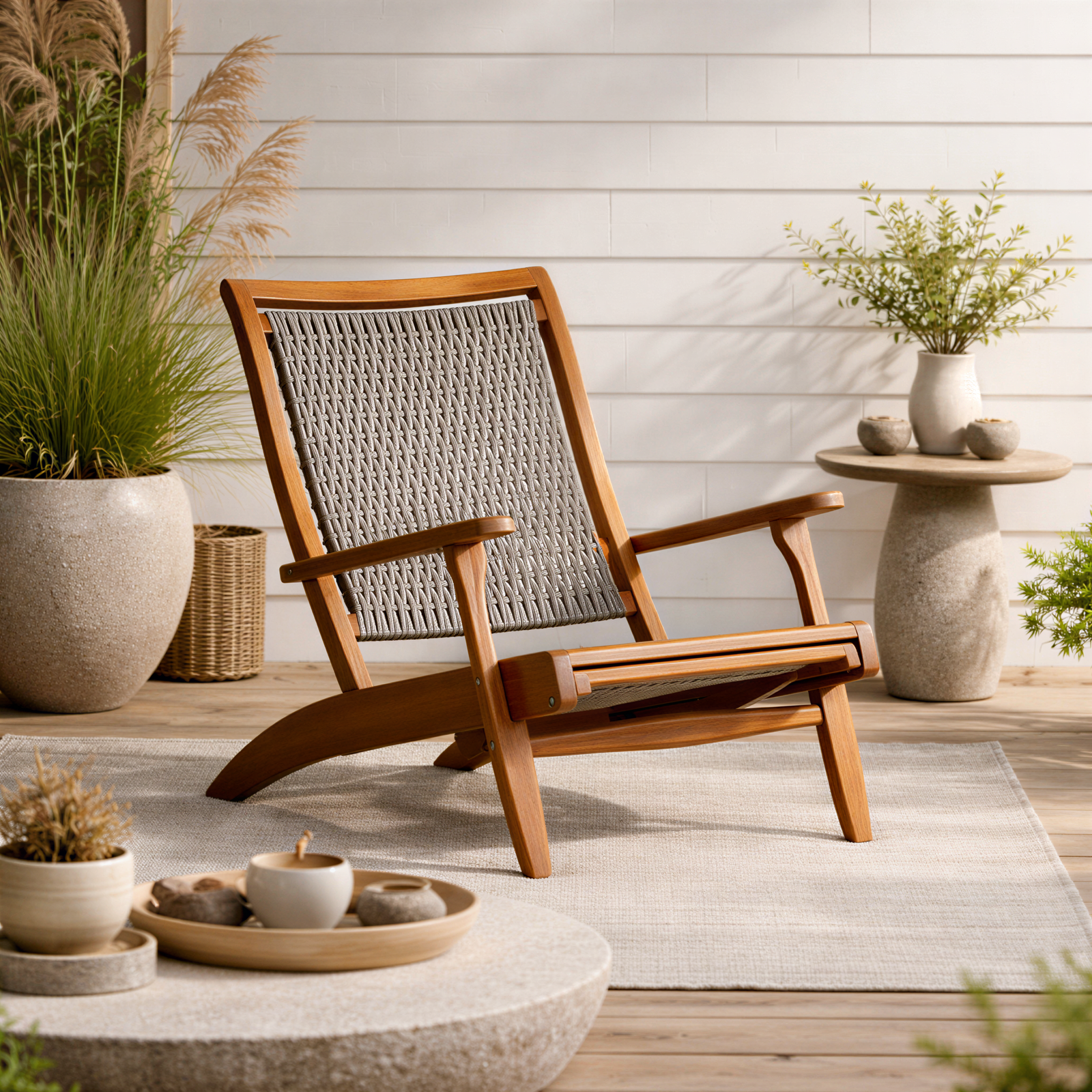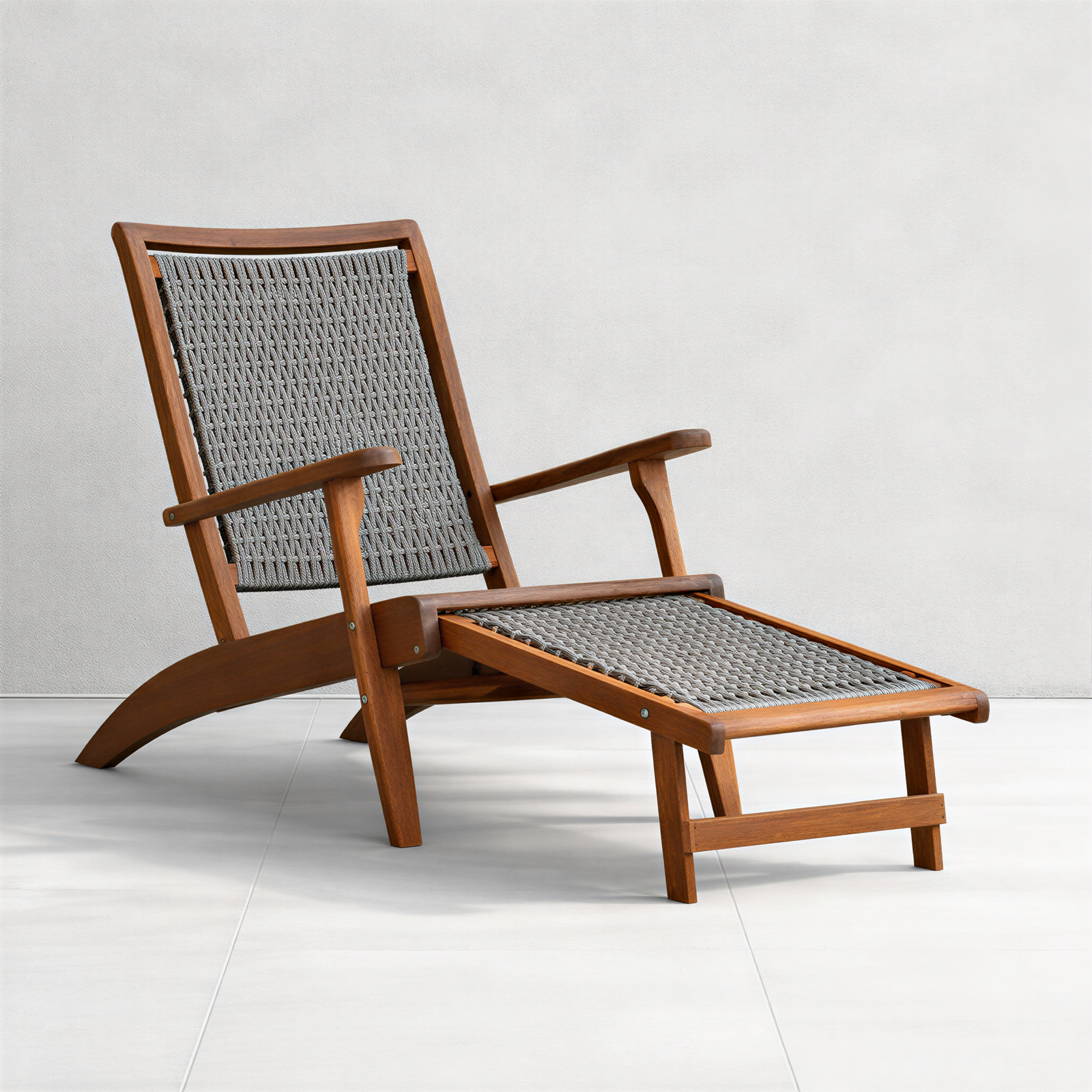 This chair’s extended form offers superior lounging support, combining natural textures with weather-resistant strength. The rope detailing adds a stylish, modern touch while enhancing breathability and outdoor suitability. Whether you’re reading, sunbathing, or entertaining, the Extenso Chair enhances every outdoor experience.