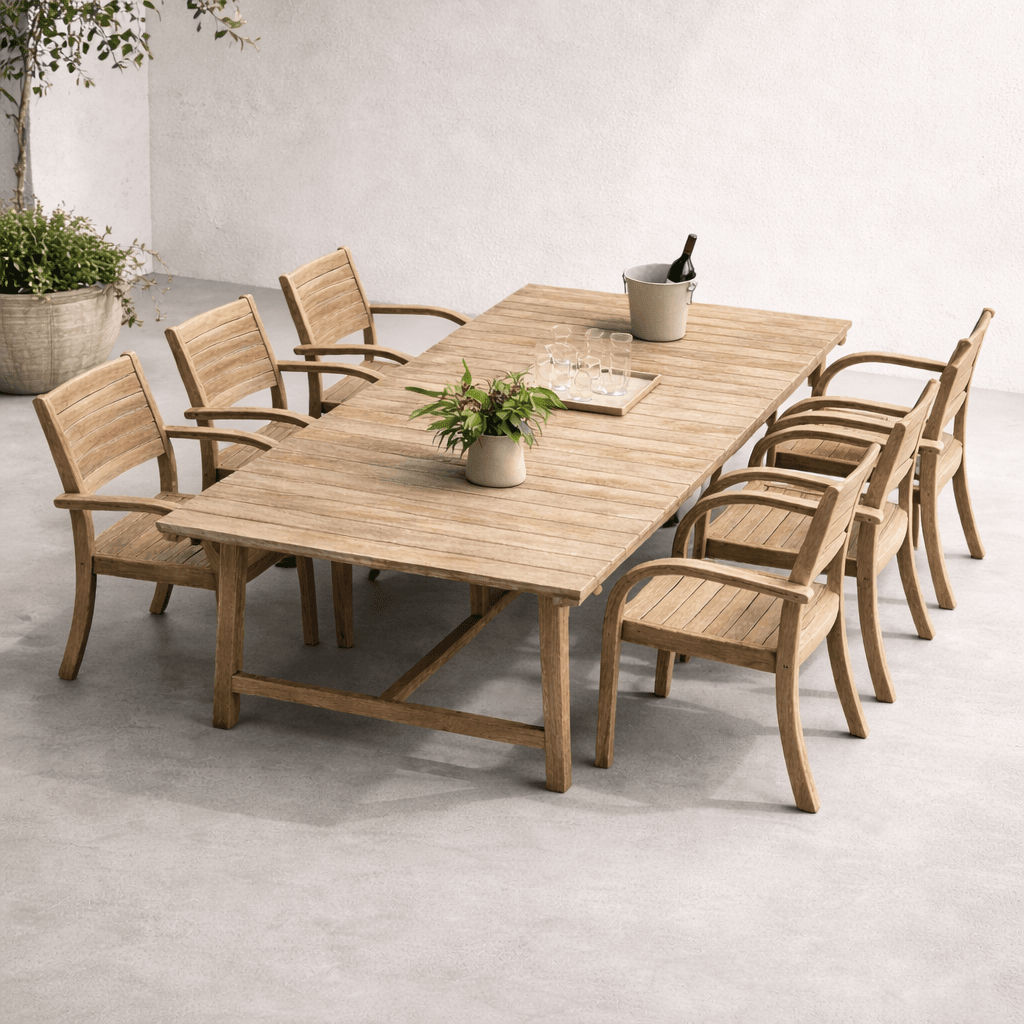 To maintain your furniture's longevity, avoid dragging it on the ground and do not allow water to stand on surfaces. Use covers for protection when not in use for extended periods. Clean regularly with a soft towel and mild soap. Avoid harsh cleaners. For water spots, use a vinegar and water solution, rinse well, and dry with a soft cloth.