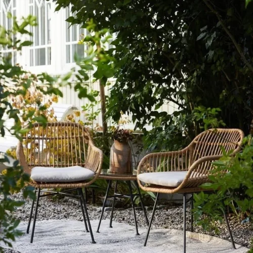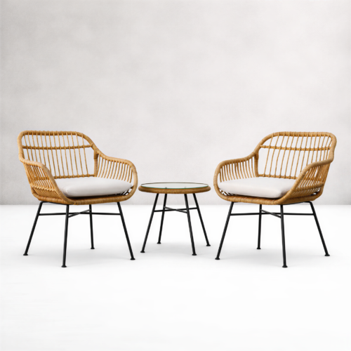 The Teller Set is a sleek and stylish piece of outdoor furniture, crafted from natural beech wood and finished with durable rope accents. Designed for patios, gardens, balconies, and poolside areas, it combines comfort with contemporary aesthetics.