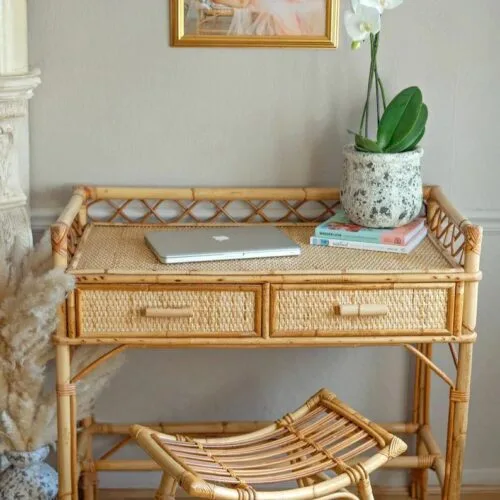 Every element of the Vultur office desk is thoughtfully designed, from the solid wood legs to the woven cane accents that add texture and airiness. These eco-friendly materials not only look beautiful but are responsibly sourced, making this workstation desk Egypt a sustainable and stylish solution for the modern workspace.